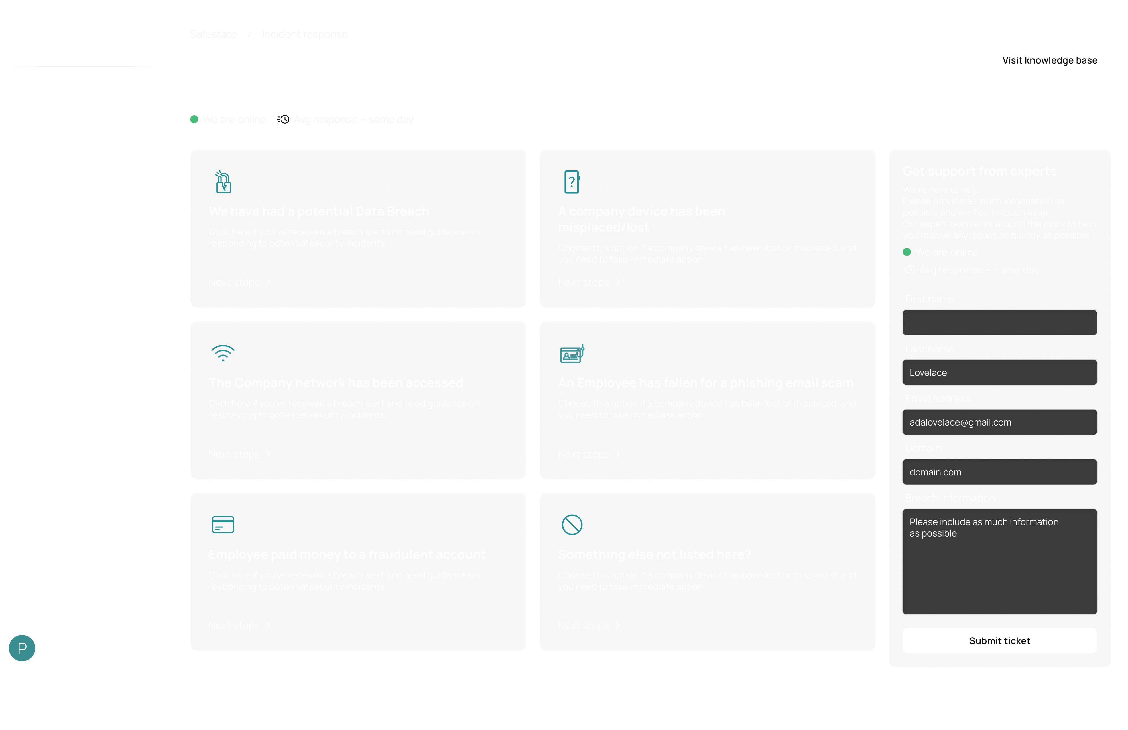 When a breach happens, most businesses freeze. The wrong move in the first hour can turn a manageable incident into a crisis. We give your customers a clear guided response flow, so they know exactly what to do, who to tell, and when.