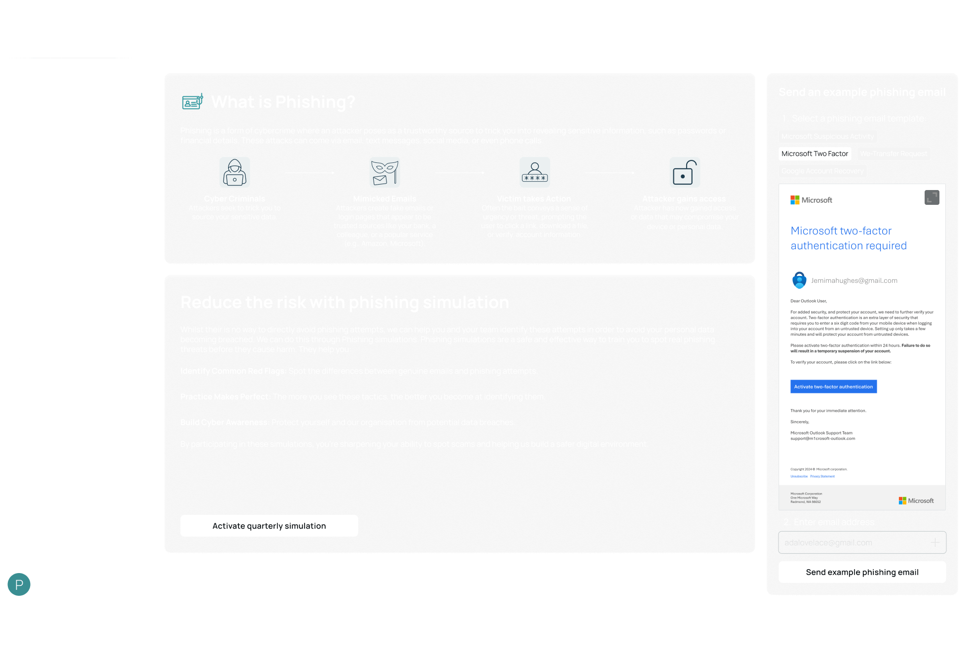 Realistic phishing tests scheduled automatically, no manual setup, no IT involvement, just results.